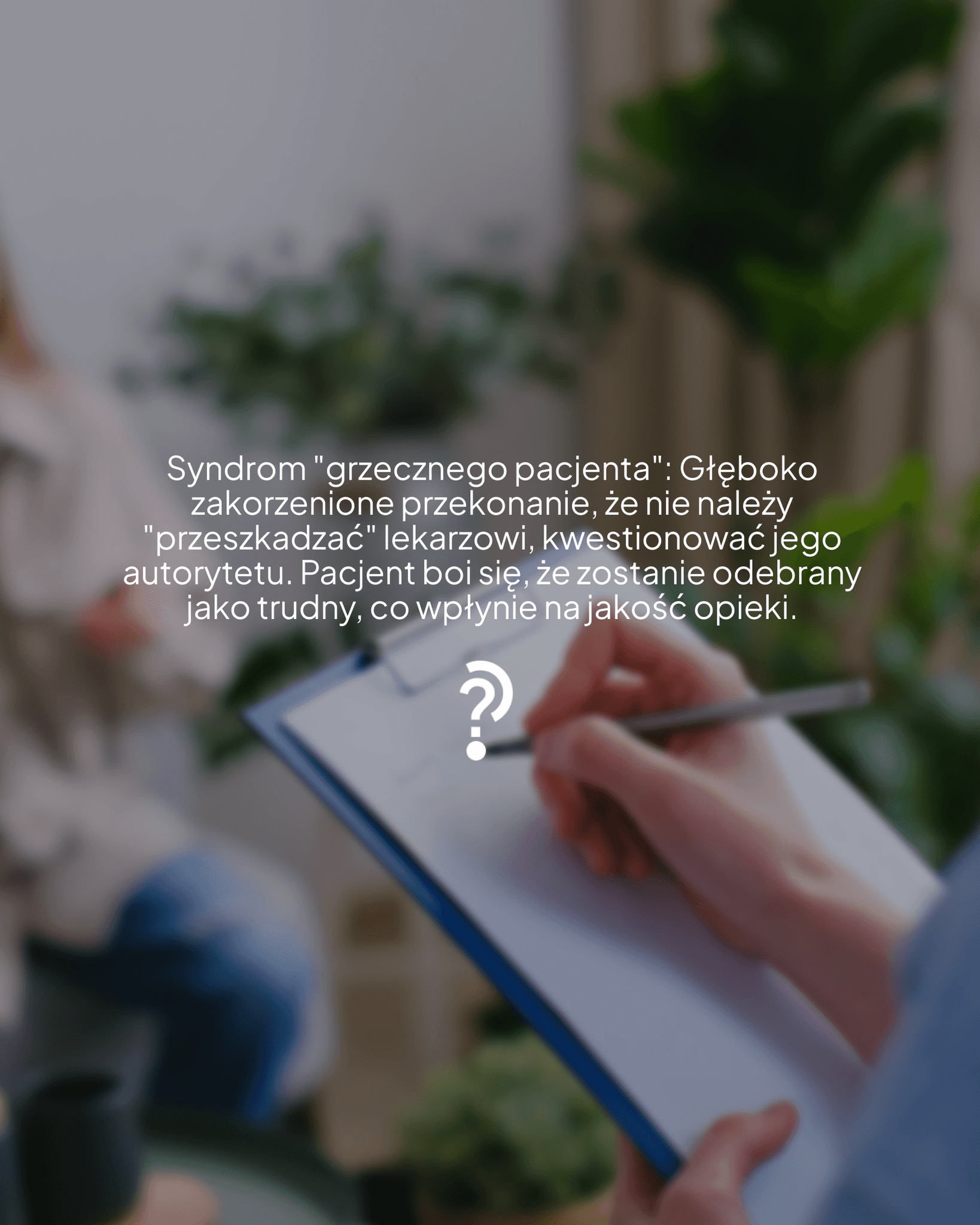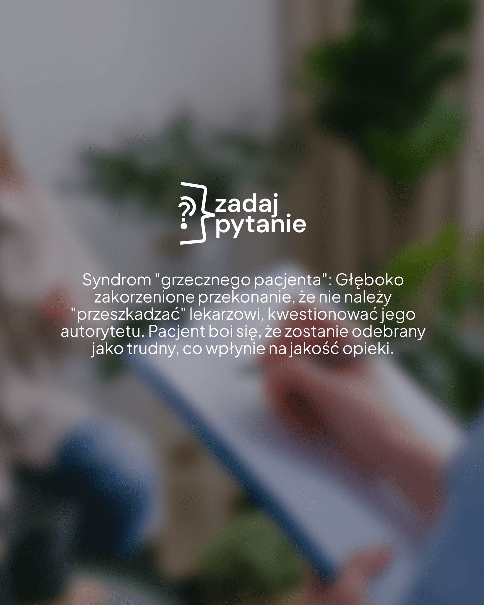 Bariery w komunikacji: lęk przed "zajmowaniem czasu" lekarzowi i paraliż decyzyjny (ONS, ASCO).